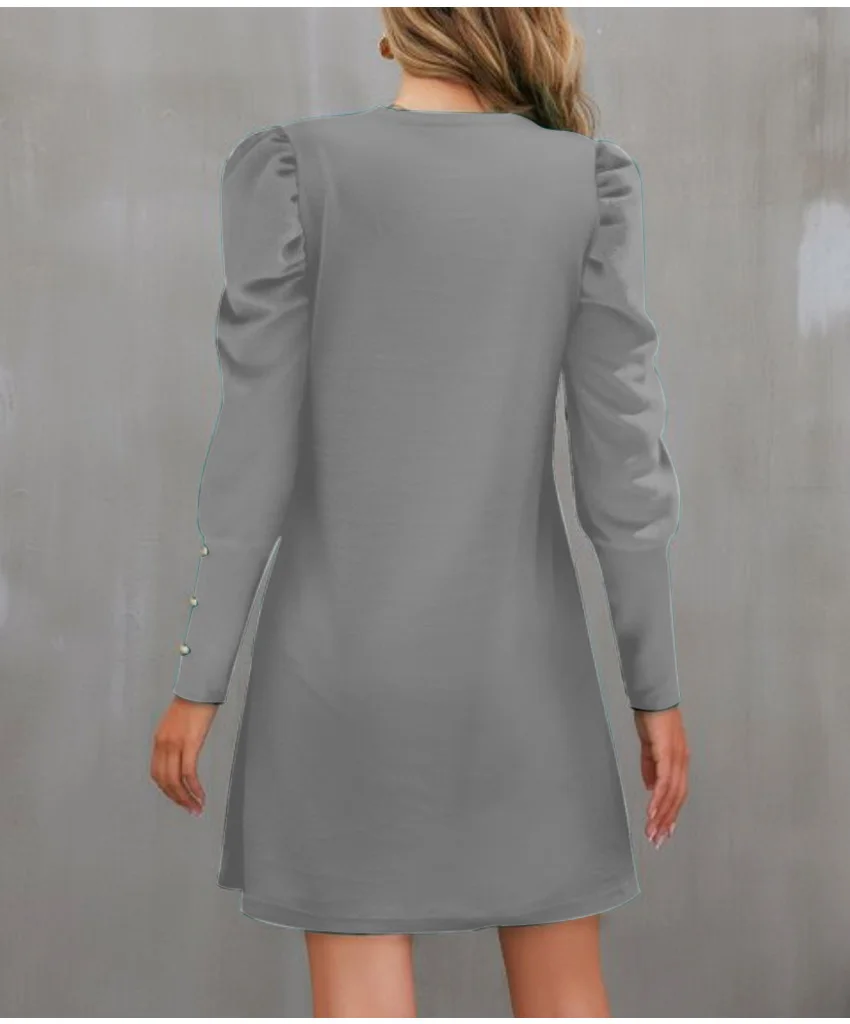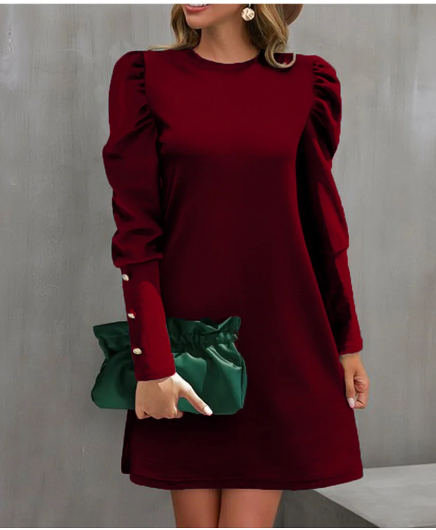 The solid color and simple button decoration add a touch of timeless style, while the O-neckline offers a classic look that pairs effortlessly with your favorite accessories. Whether you're running errands, meeting friends, or enjoying a weekend getaway, this dress will keep you looking stylish and comfortable all autumn long.