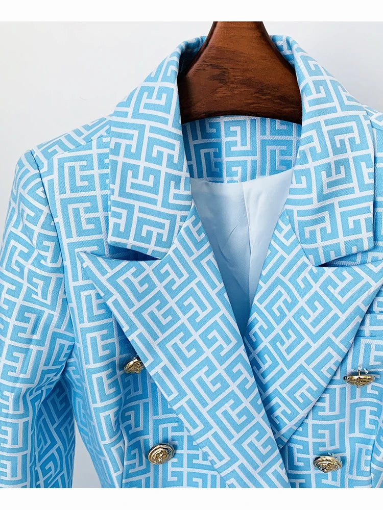 2024 High Street Women's Double Breasted Lion Button Jacquard Blazer