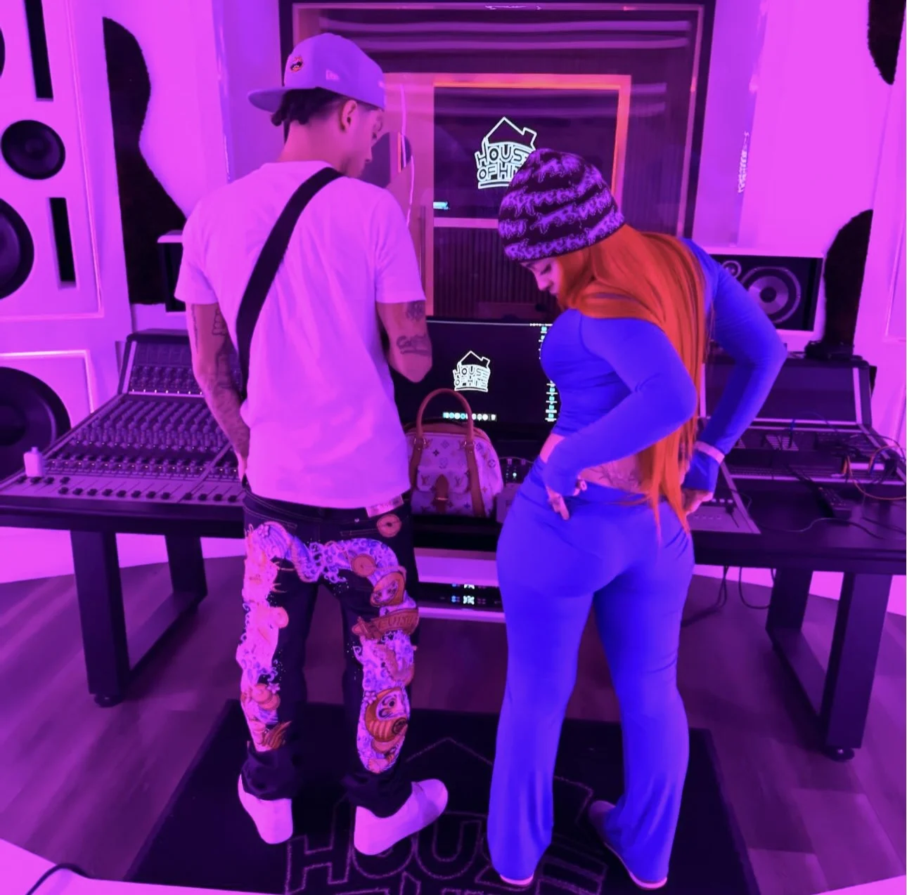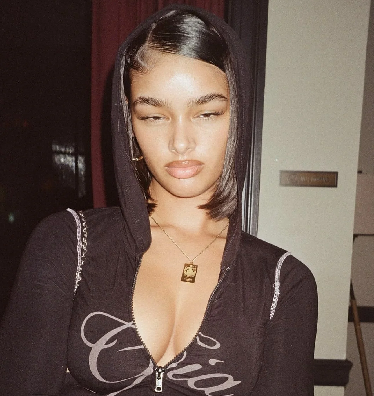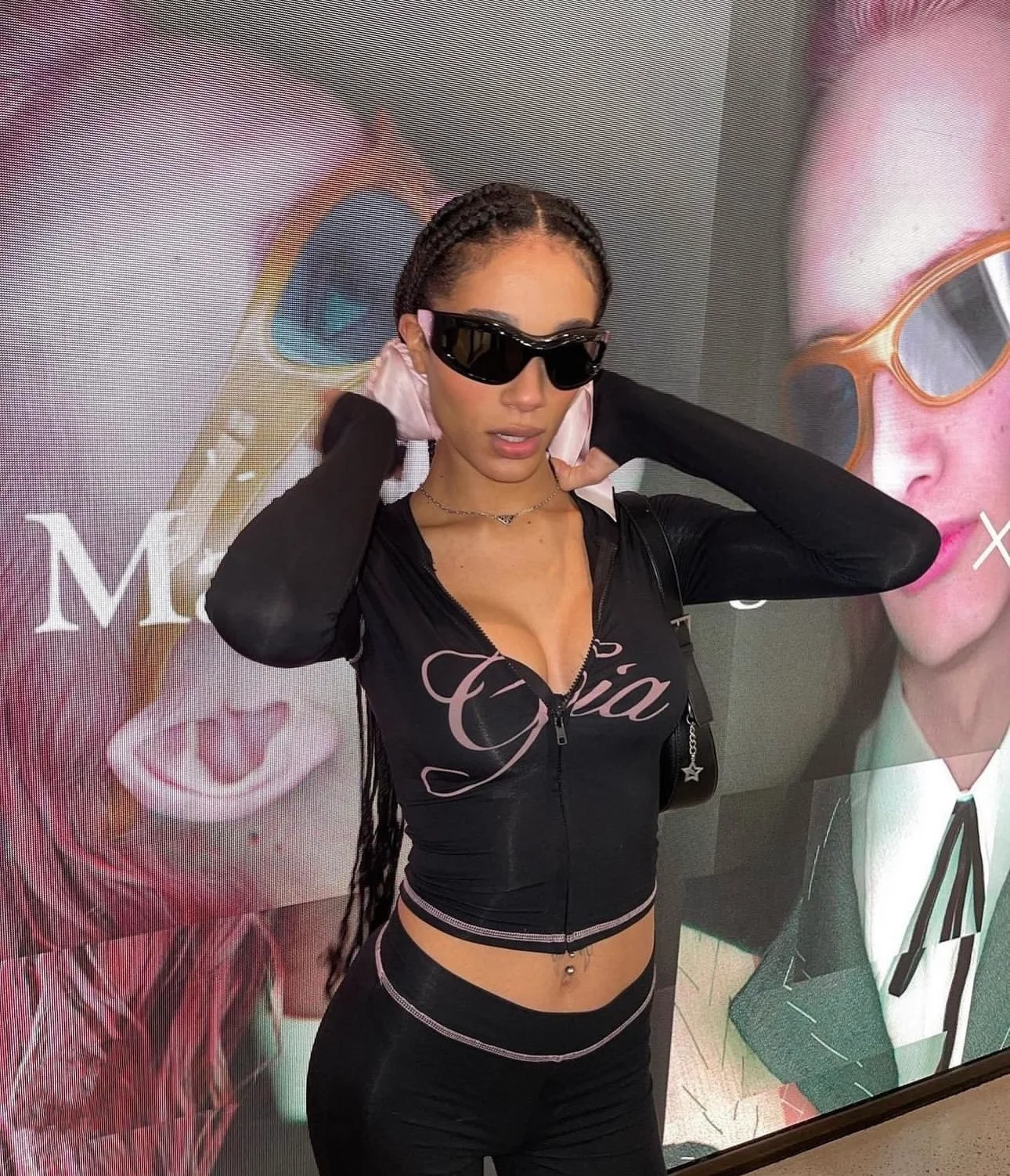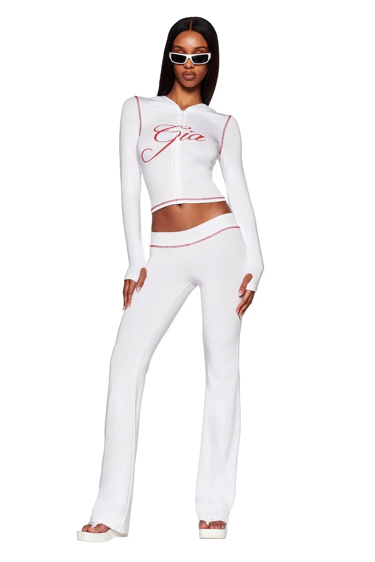 Iamgia Zip-Up Cap Long Sleeve Top & Low Waist Micro Flared Pants