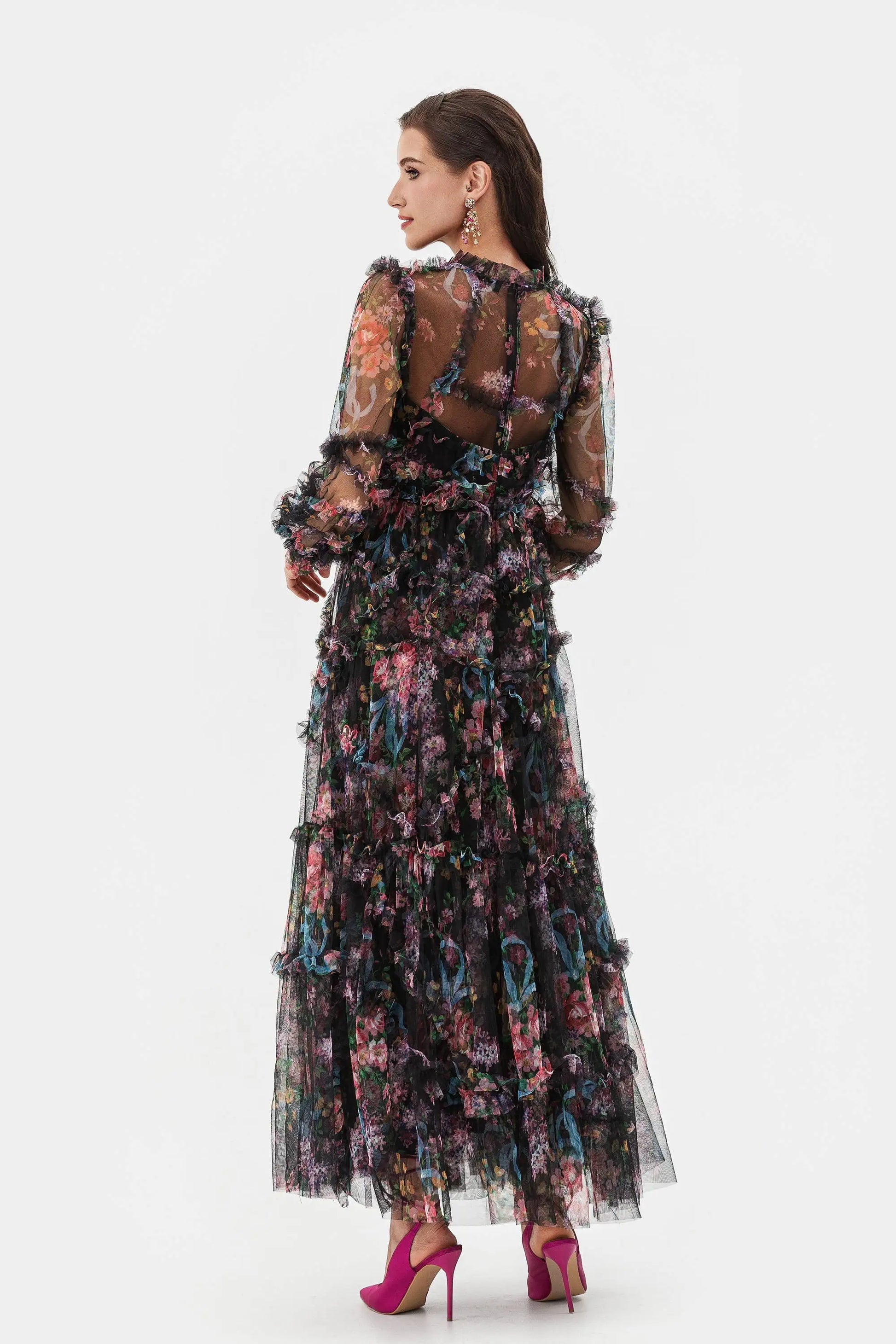 Elegant Lace Ruffle Mesh Gown