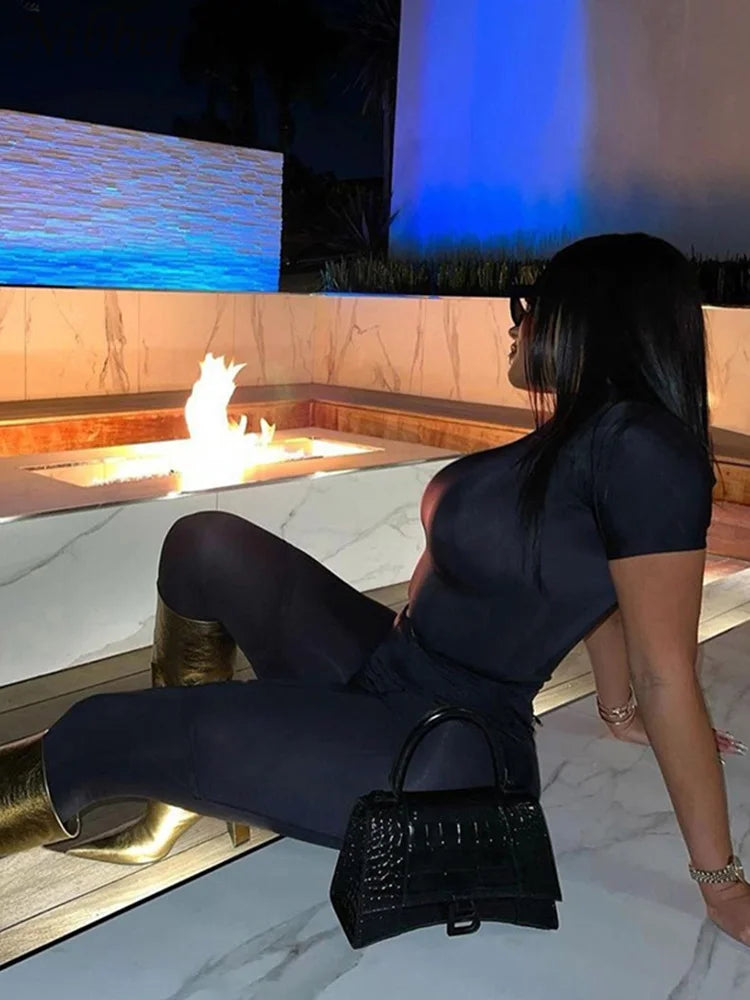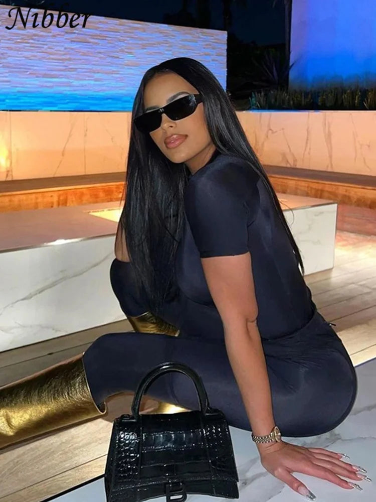 Nibber Activewear 2-Piece Set - Sporty Short Sleeve Top & Skinny Pants