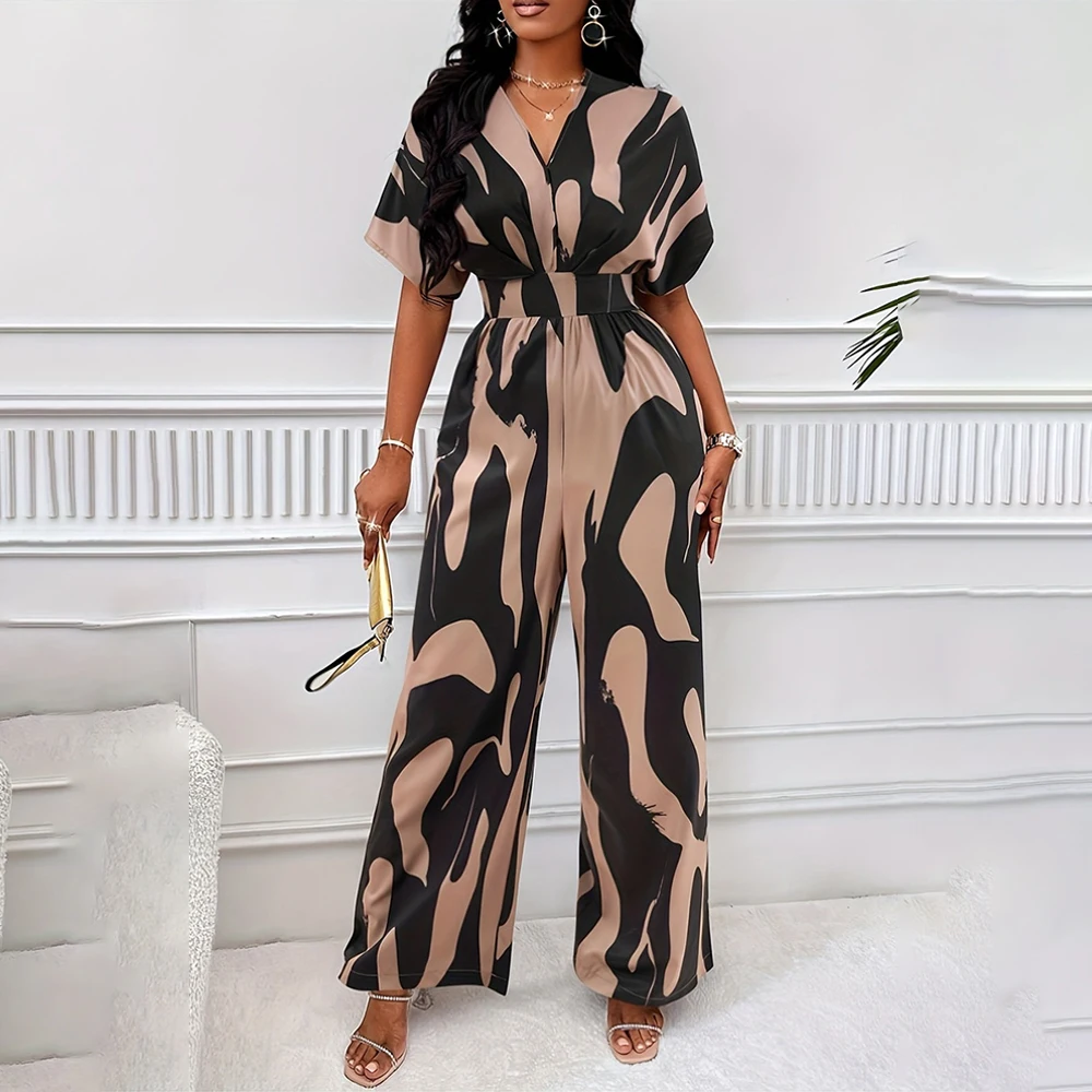 Summer Wide-Leg Jumpsuit – High Waist, Short Sleeve
