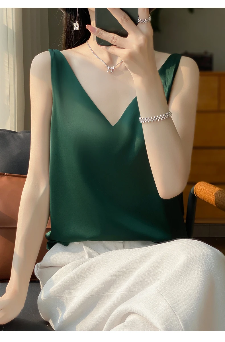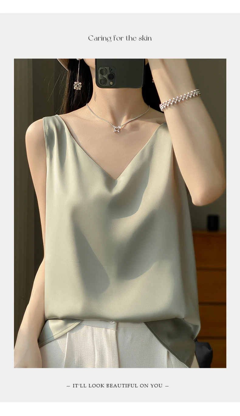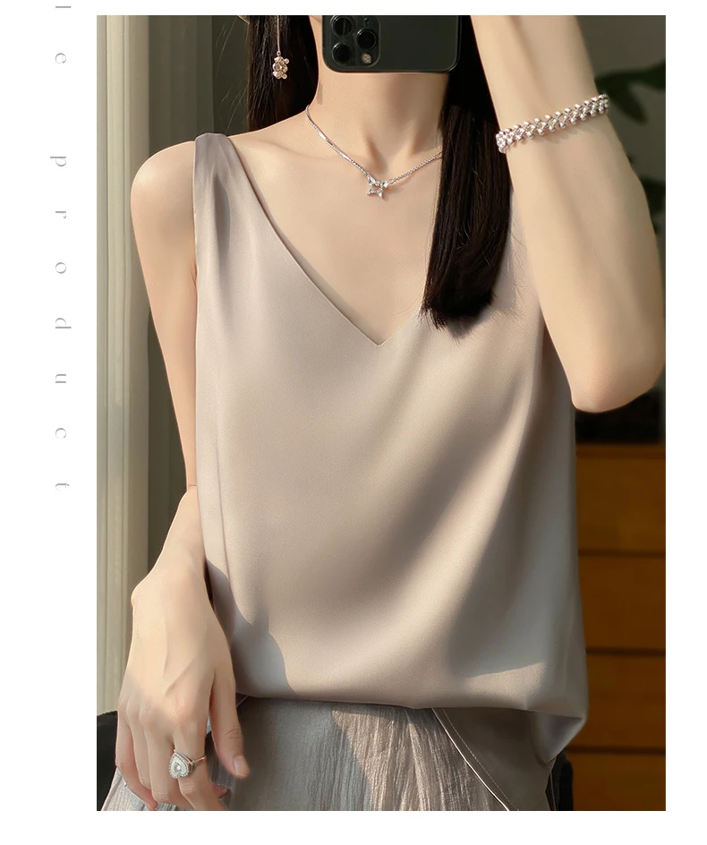 Designed for elegance and comfort, this backless chiffon camisole is a must-have summer essential. The silk and microfiber blend gives it a luxurious, smooth feel, while the breathable chiffon fabric ensures a lightweight, breezy fit.