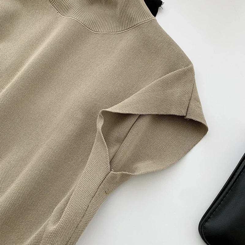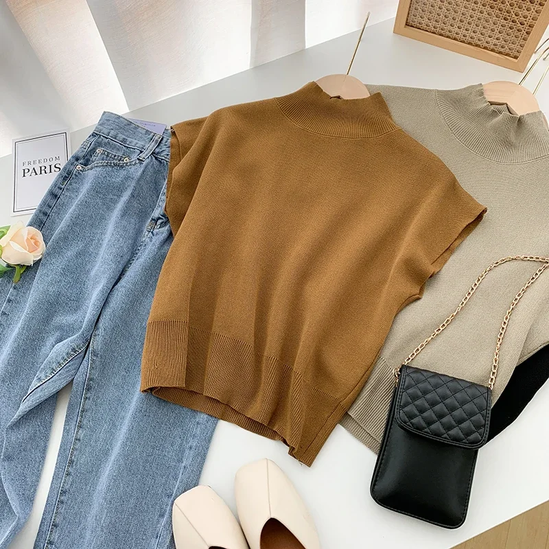 Elegant Stand-Up Collar Knitted Blouse – Women's Short-Sleeve Loose Fit Summer Top for Office & Casual Wear