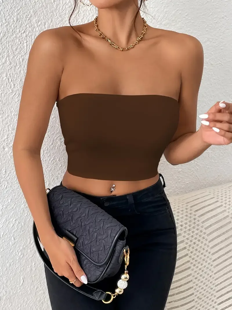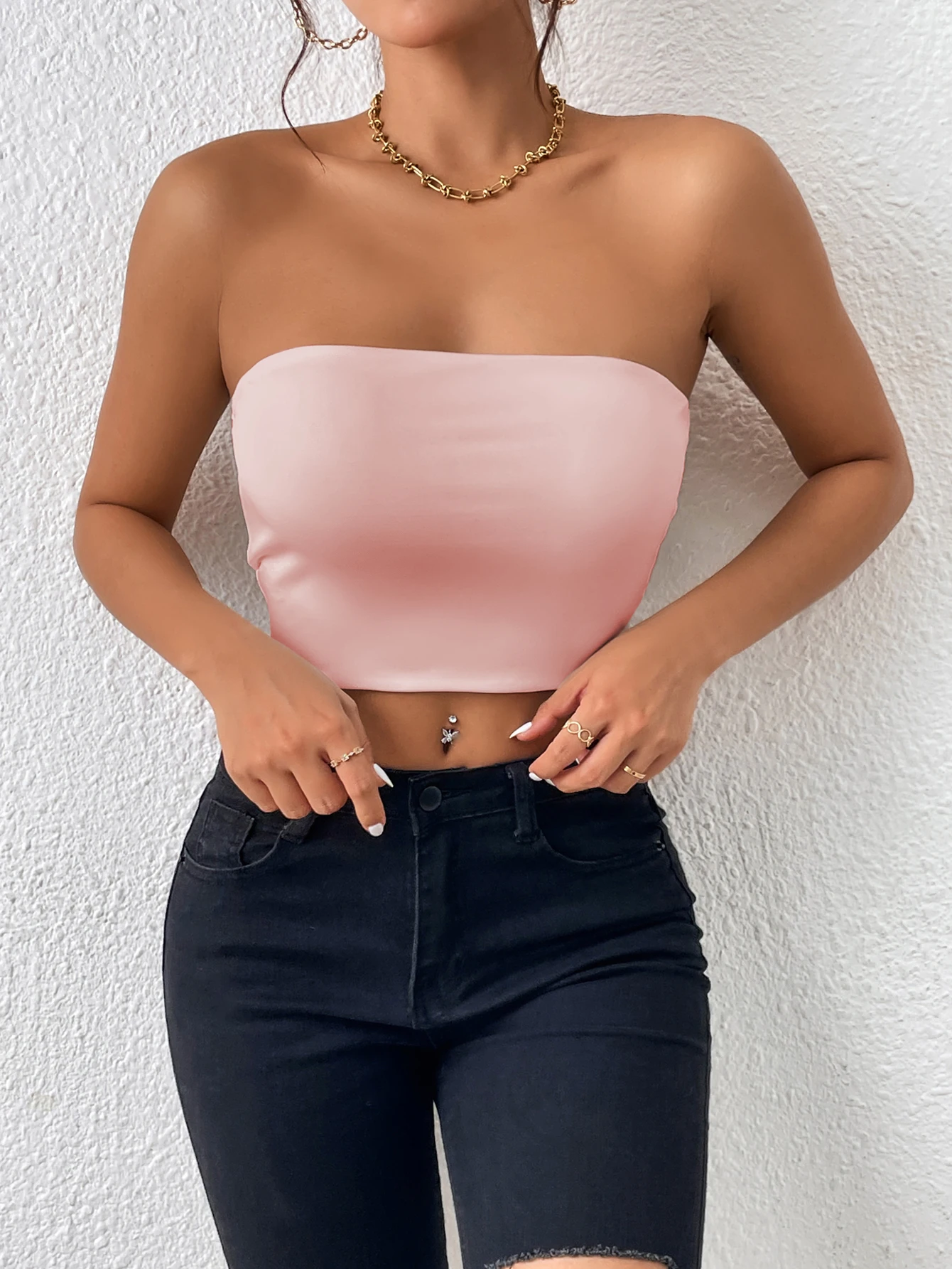 Strapless Tight-Fit Crop Top – High Elasticity & Sexy Style