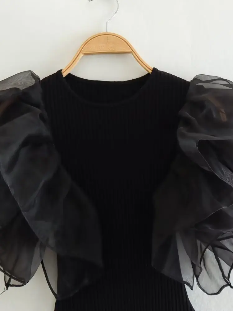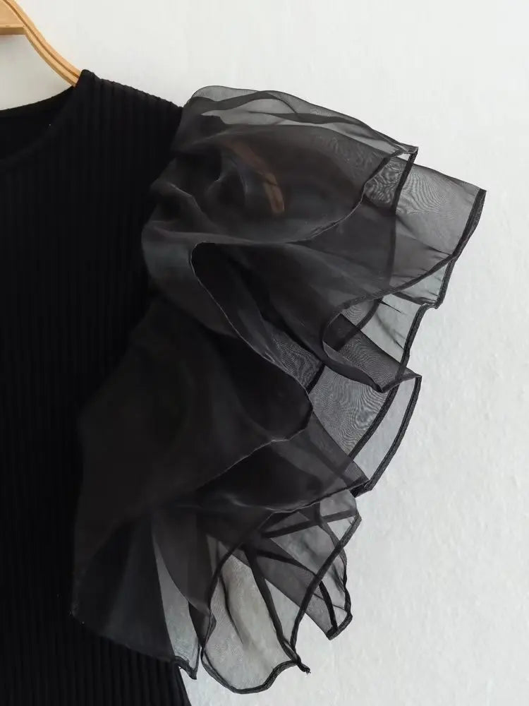 Willshela Women Fashion Black Ruffled Bodysuits Vintage O-Neck Sleeveless Female Chic Lady Tight Tops