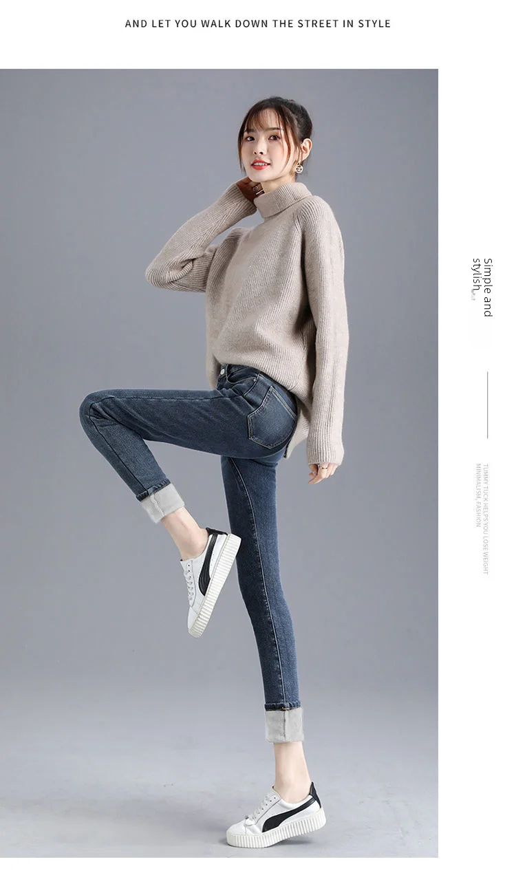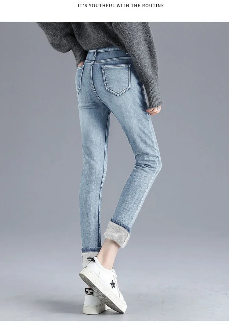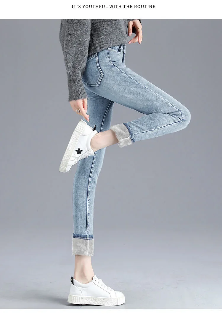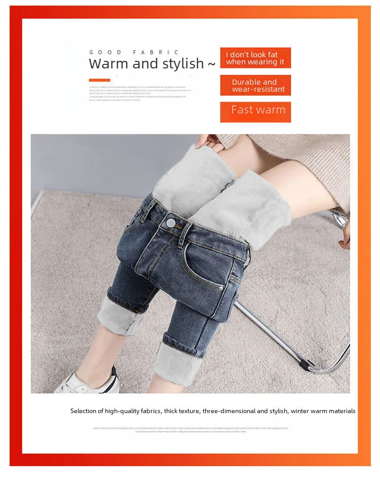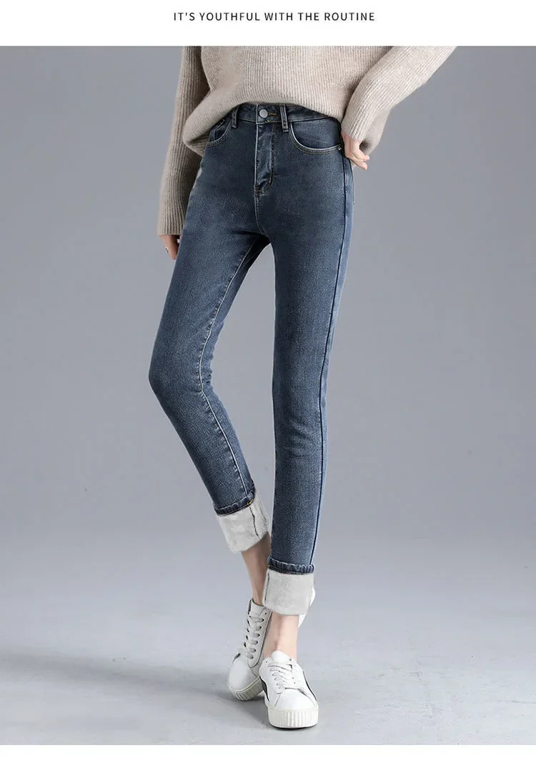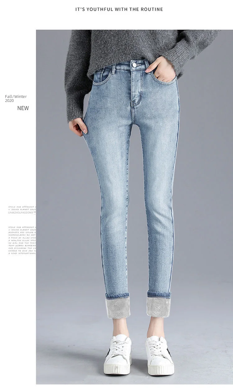 Style Tip: Pair these cozy fleece-lined jeans with an oversized knit sweater and ankle boots for a chic winter look, or layer them under a wool coat for extra warmth.