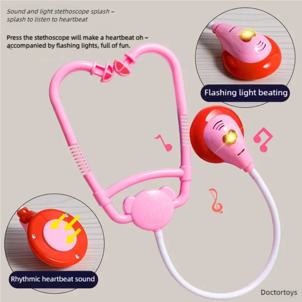 - The stethoscope mimics a real heartbeat sound, while other tools light up to enhance sensory exploration.